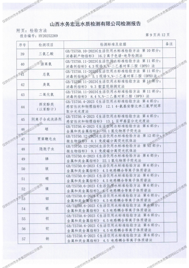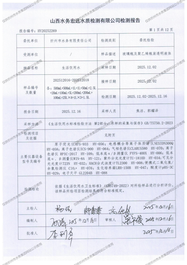 2025年忻州城區(qū)公共供水南水廠、三水廠、云中水廠出廠水97項(xiàng)水質(zhì)全分析